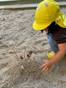 お砂のおやまに、木の枝や葉っぱ🍃を飾りましょう🌺