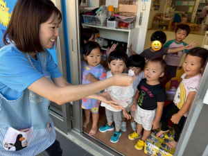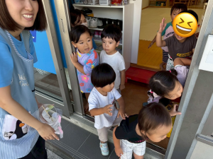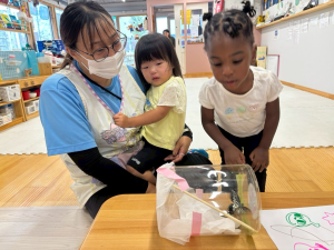 「何かな?」「あおむしさんだ~」と‼興味いっぱいで覗き込む子どもたち!