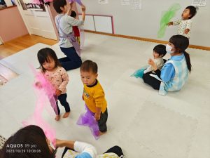 英語遊び 2025 10/30 ブログ 2025年10月30日 2025年10月30日 英語遊びをぽこぽこもくもく合同でしました✨ 楽器もらったよ😊 太鼓ドンドンドン♪ ここから音がするぞ~ 音楽に合わせて、ゆらゆら~❣️ 今日の英語あそびも楽しかったね~🥰 ブログ おひさまひろばがありました🥰 ハッピーハロウィン🎃🦇