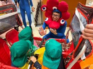 ミャクミャクさんだ~‼ マリオさんもいたよ!