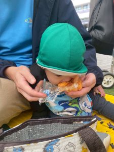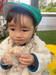もくもくさんは元町公園で遊んだ後、おにぎりタイム🍙