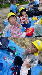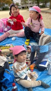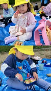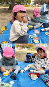 「おにぎりおいしい~!」「ウインナー入ってる!」とお友だちとお喋りしながら