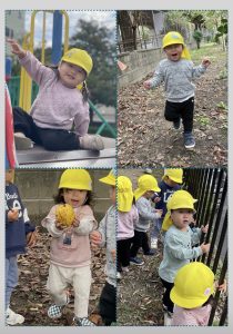 沢山探検もして大きな葉っぱも木の実も見つけたよ🍎
