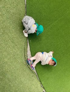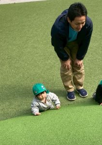 芝生の滑り台、上まで登って沢山すべったよ🌟