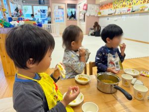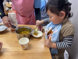 お昼寝後のカレーパンづくりの様子をおつたえしたいと思います。