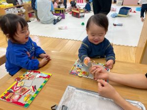 せんせいやお友だちと一緒におしゃべりしながらパズルしているよ(^^♪