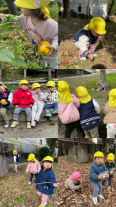 もくもさんは、自然観察に夢中です!「たんけんにいこ~よ~」と、みんなでGO!🍂葉っぱや木の実、土にあいた穴ぼこ等に興味いっぱい!木の幹の穴は、りすさんのお家かな?