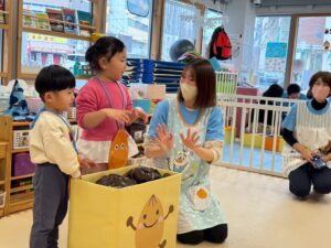 卒園式でみんなでする”里いもちゃんの劇遊び”を楽しんでいます♪
